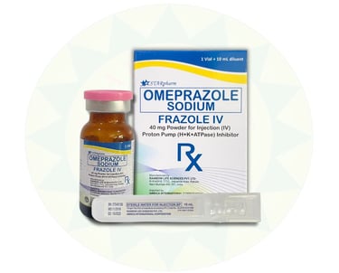 Reduce stomach acid and alleviate symptoms of acid reflux with Frazole IV, an injectable proton pump inhibitor (PPI) prescribed for its effectiveness in treating gastrointestinal conditions.