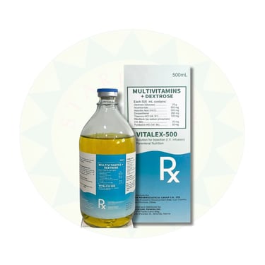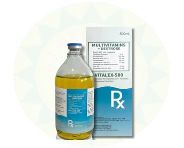 Replenish essential nutrients and boost energy levels with Vitalex-500, an injectable solution containing a combination of vitamins and dextrose to support overall health and vitality.