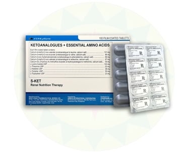For the prevention and therapy of damages due to faulty or deficient protein metabolism in chronic renal insufficiency in connection with a limited protein food of 40 grams per day (for adults) and less.